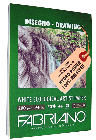 Vitt syrafritt ekologiskt rit- och skissblock. Kallpressad vit yta, finns i 200 och 120 gram. Framtaget på 100% återvunnet papper. Ge att använda återvunnet papper sparar man 15 träd per ton av tillverkat papper som motsvarar ca 1200 block.