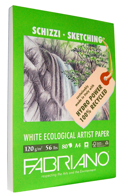 Vitt syrafritt ekologiskt rit- och skissblock. Kallpressad vit yta, finns i 200 och 120 gram. Framtaget på 100% återvunnet papper. Ge att använda återvunnet papper sparar man 15 träd per ton av tillverkat papper som motsvarar ca 1200 block.