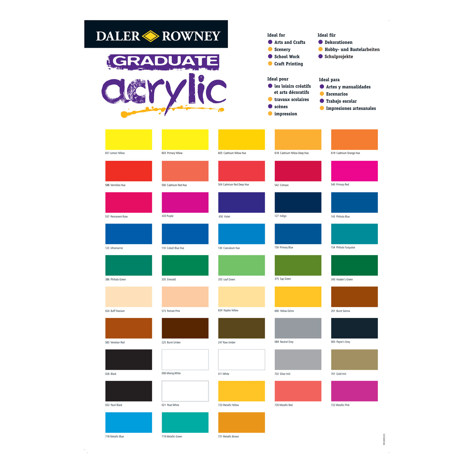 48 FÄRGER TILLGÄNGLIGA. Hämta hem "Färgkarta" för Daler Rowney Akrylfärg.