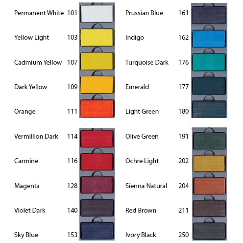 En akvarellkaka 45x22x12mm. Kan användas på material som papper, målarduk, trä och även glas. Måla med den direkt eller med pensel.