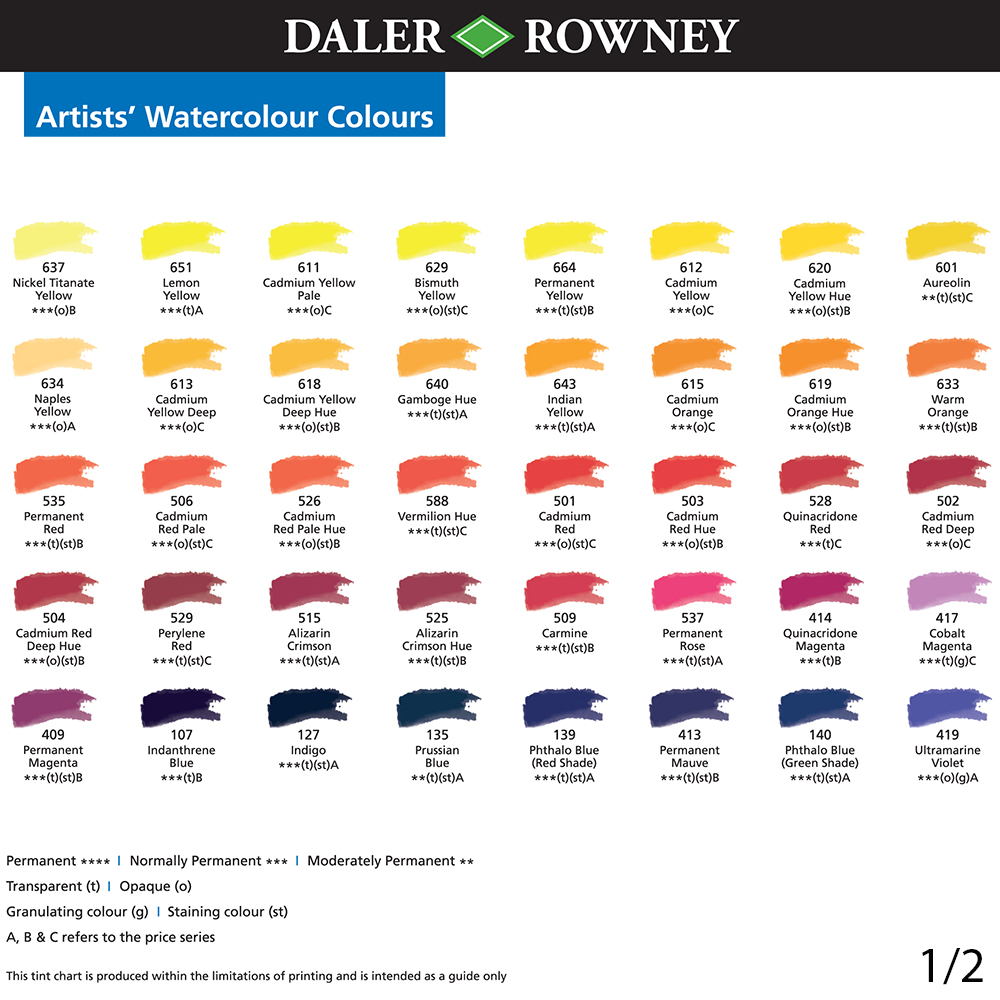 Akvarellfärg av högsta artistkvalitet. Mycket hög pigmentering. Extremt finmalda pigment för högsta briljans. Kakor av typen "moist" = penseln tar färg utan att behöva gnugga.