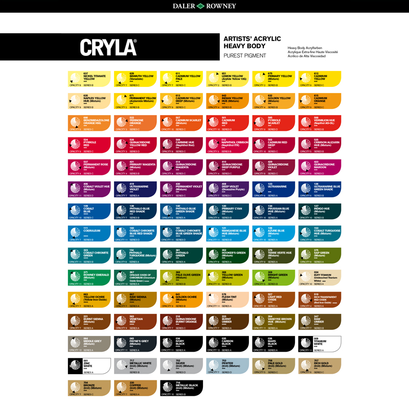 Akrylfärg i högsta artistkvalitet. Mycket hög ljusäkthet. Smöraktig jämn konsistens över hela färgskalan. Ytterst fint malda pigment. Mycket hög pigmentering.