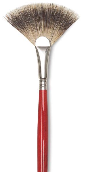 En lättarbetad solfjäderpensel. Flat. Extra graders vinkel i Badgerhår. Långt rött skaft. Hylsa av nickel. Lämplig för olja och akryl. Bredd 10,1 mm, längd 21 mm