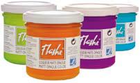 Färgen torkar snabbt, i regel efter ca 30 minuter. Ger ett matt och helt täckande resultat. Flashe är högpigmenterad och dryg, vilket gör den ekonomisk, passar bra både till inomhus och utomhusmåleri.