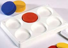 Finkornigt färgpigment i puckformat. Täckfärgskakor är