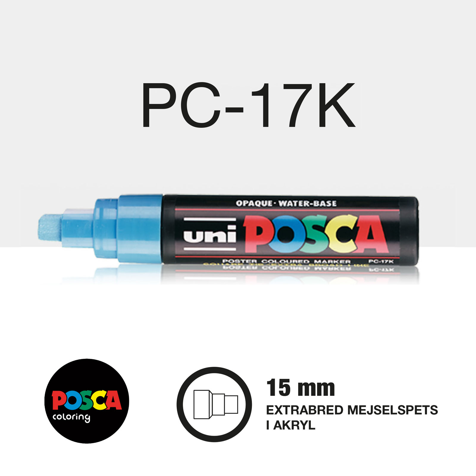 POSCA PC-17K med extrabred snedskurna spets tillhör POSCA:s produktutbud som är anpassad för experter. POSCA:s XXL-spets är en favorit hos yrkespersoner som vill lyckas med sitt skrivande, för konstnärer som vill skapa stora konstverk!